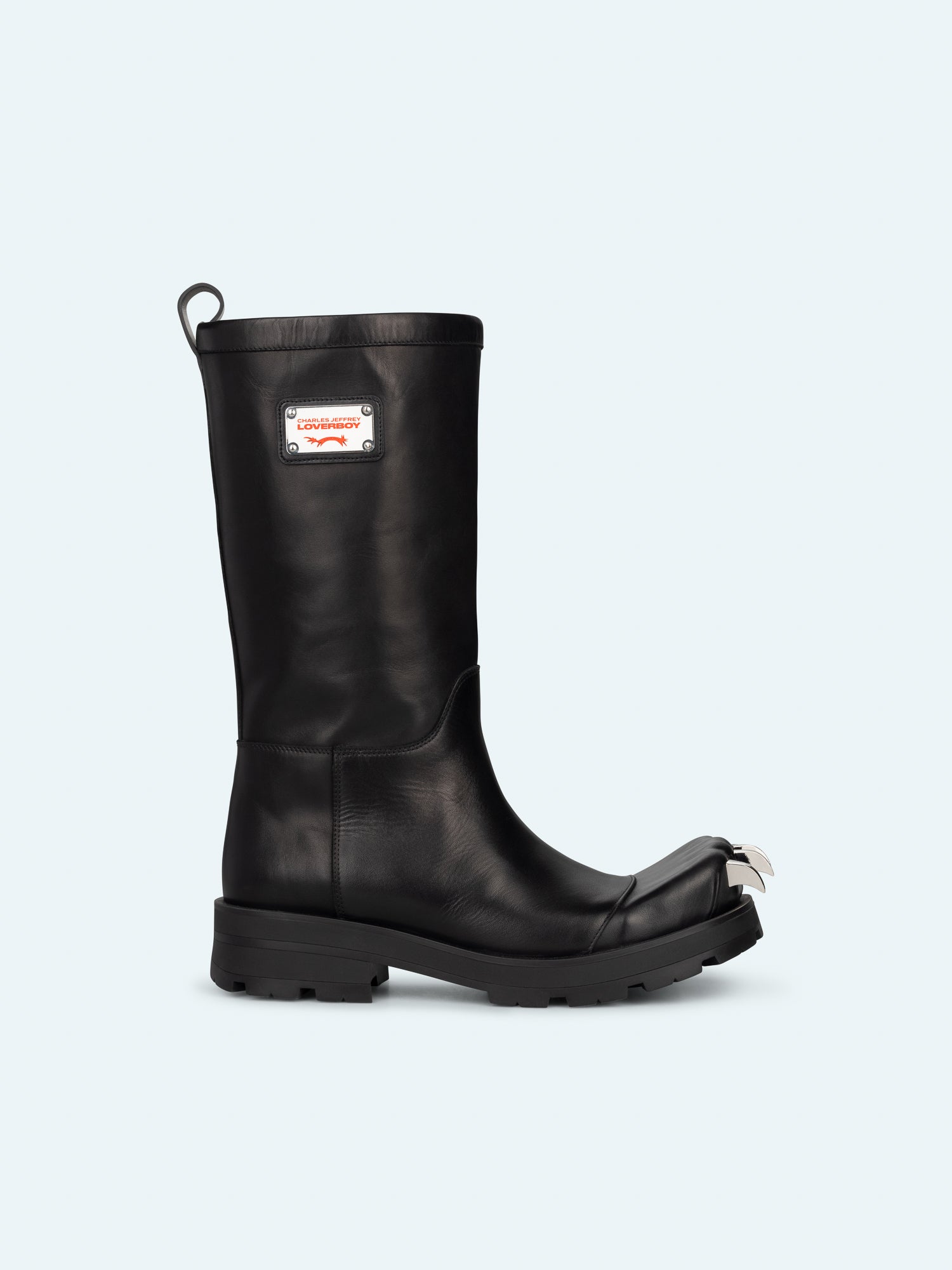 An extension of our iconic moccasins. these Boot Moggies retain all the edge that made their clawed siblings so recognisable. Crafted in Italy in our classic leather and featuring our logo on the side. these slip-on boots will make sure to finish off any true LOVERBOY look.